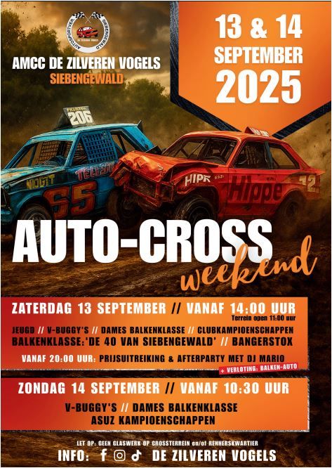 AMCC de Zilveren Vogels houdt in het weekend van 13 en 14 september het populaire autocrossweekend op het aangelegde crossterrein langs de Nieuweweg 83 in Siebengewald.