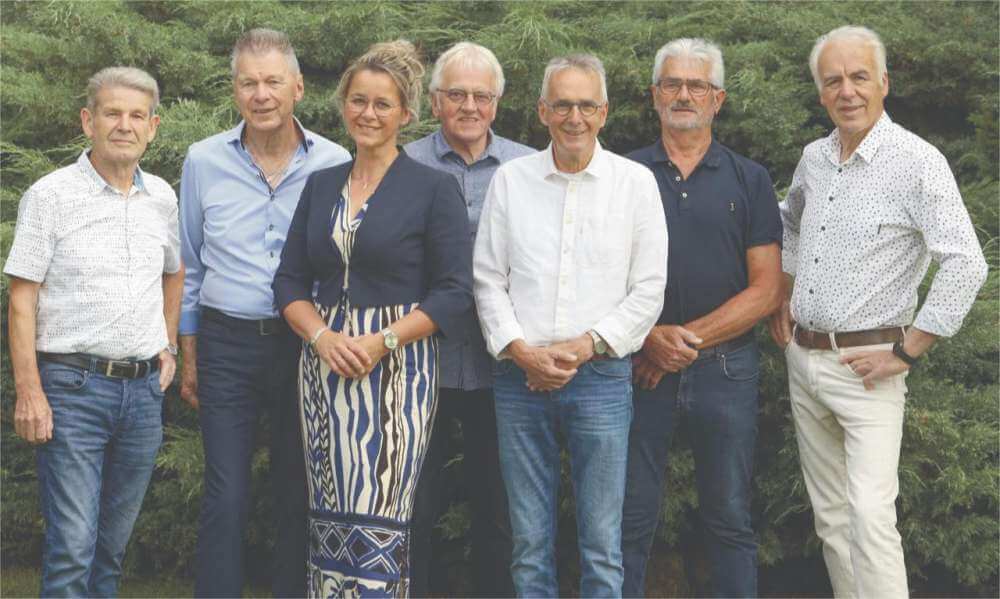 Foto: Uut Offere is de laatste naamsverandering van the Emulations en bestaat uit (vlnr) Theo Janssen, Emiel Rutten, Jennifer Bartels, Theo Arts, Piet Wijers, Henk Willems en Ger Koch.