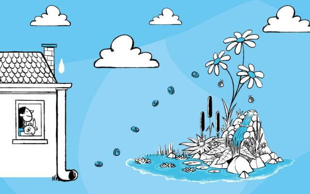 Regenwater hoeft niet via het riool te worden afgevoerd, het kan ook in de eigen tuin en omgeving weglopen. Zo blijft het regenwater op de plek waar het valt om uitdroging van tuin en omgeving te voorkomen.