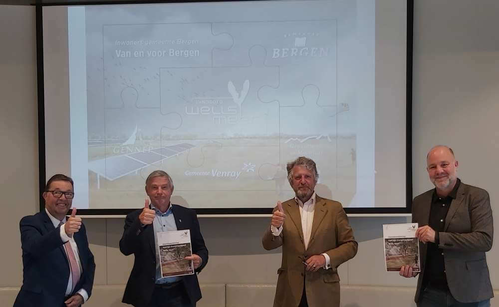 Woensdag 23 juni ondertekenden de gemeenten Venray, Gennep en Mook en Middelaar de intentieverklaring met Gemeente Bergen waarmee ze hun interesse uitspreken om mee te investeren in Energielandgoed Wells Meer. Door de samenwerking te zoeken, zorgt Gemeente Bergen voor een sterke Noord- en Midden-Limburgse invulling van de energietransitie.