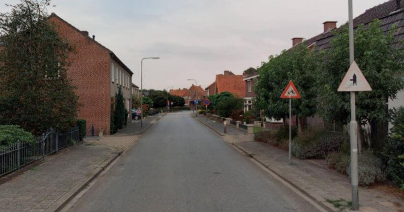 Foto: De Langstraat in Afferden. Het bord ‘Pas op, straat van links’ heeft geen toegevoegde