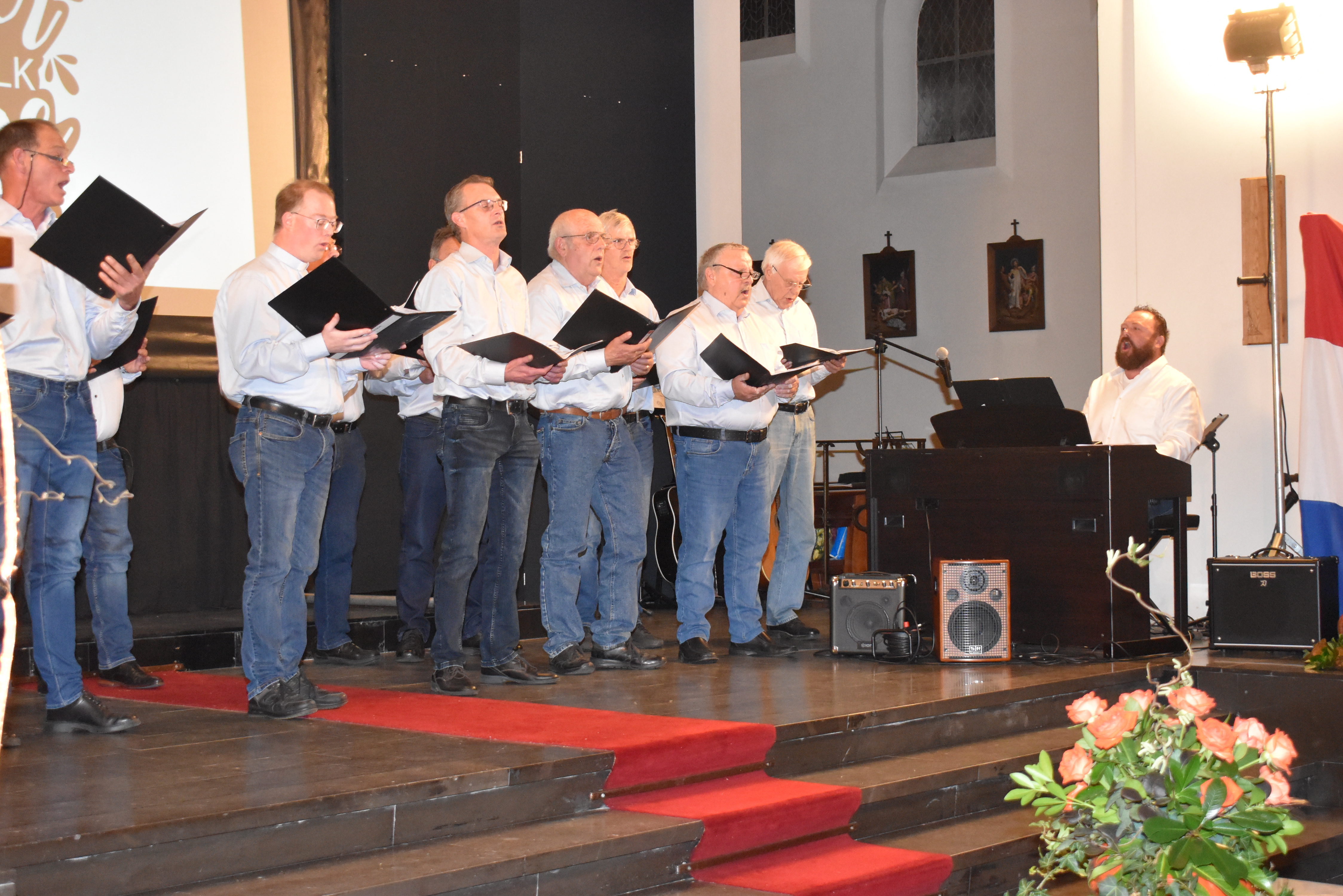 Foto: Het Grenslandmannenkoor in actie tijdens een concert in de Cosmas en Damianuskerk in Afferden.