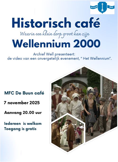 Tijdens deze avond worden unieke videobeelden vertoond van een bijzonder moment uit de dorpsgeschiedenis: het Wellennium 2000, een prachtig evenement dat Well op de drempel van het nieuwe millennium samen vierde.