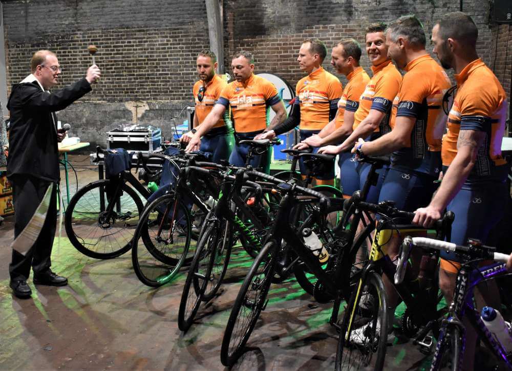 In dit voormalige gebouw van de coöperatieve boerenbond waar de slogan 'In samenwerking ligt onze kracht' jarenlang opgeld deed, blijkt deze leus nog steeds niet aan kracht te zijn ingeboet. Dankzij de samenwerking en inspanningen van de acht renners hoopt Peter niet alleen het mooie bedrag van 15.000 euro of meer voor onderzoek naar oorzaak en behandeling van ALS bij elkaar te krijgen, maar ook Wesley en Anja moreel te steunen in hun verlies van Bert. Een reden waarom pastoor Blom graag aan dit initiatief meewerkte en zijn zegen gaf.