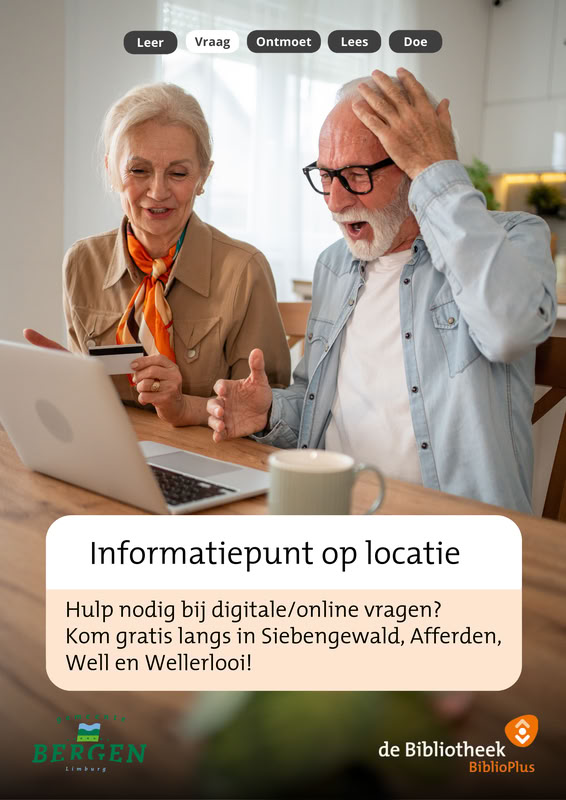 BiblioPlus organiseert in samenwerking met de Gemeente Bergen, het Informatiepunt op locatie. Ook in 2026 komen wij weer in de dorpskernen.