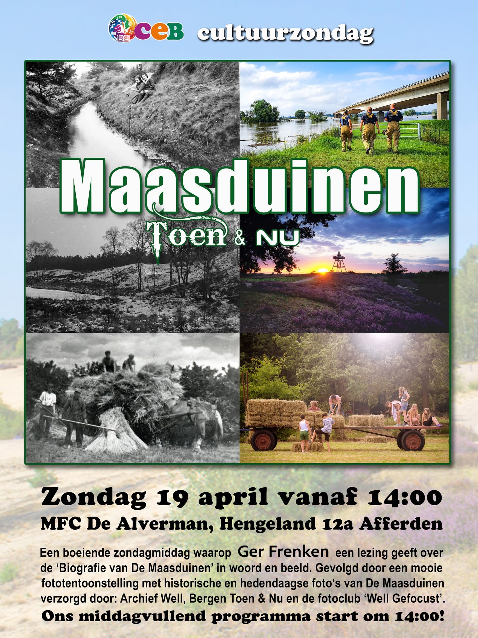 Zondag 19 april om 14.00 begint in de Offerse Alverman de 2e Cultuurzondag van dit jaar van Cultuur-Evenementen Bergen. Tijdens deze middag staat de geschiedenis van de Maasduinen centraal.