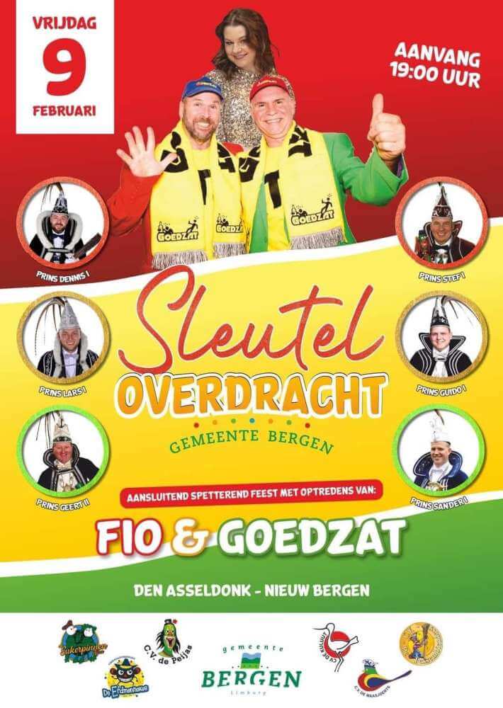 De gemeente Bergen geeft dan op symbolische wijze middels de overhandiging van een sleutel de 'macht' van het gemeentehuis over aan de zes carnavalsverenigingen. Deze machtswisseling bestrijkt een periode van vier dagen tot aan Aswoensdag. Dat behoren de zes sleutels weer ingeleverd te worden op het gemeentehuis.