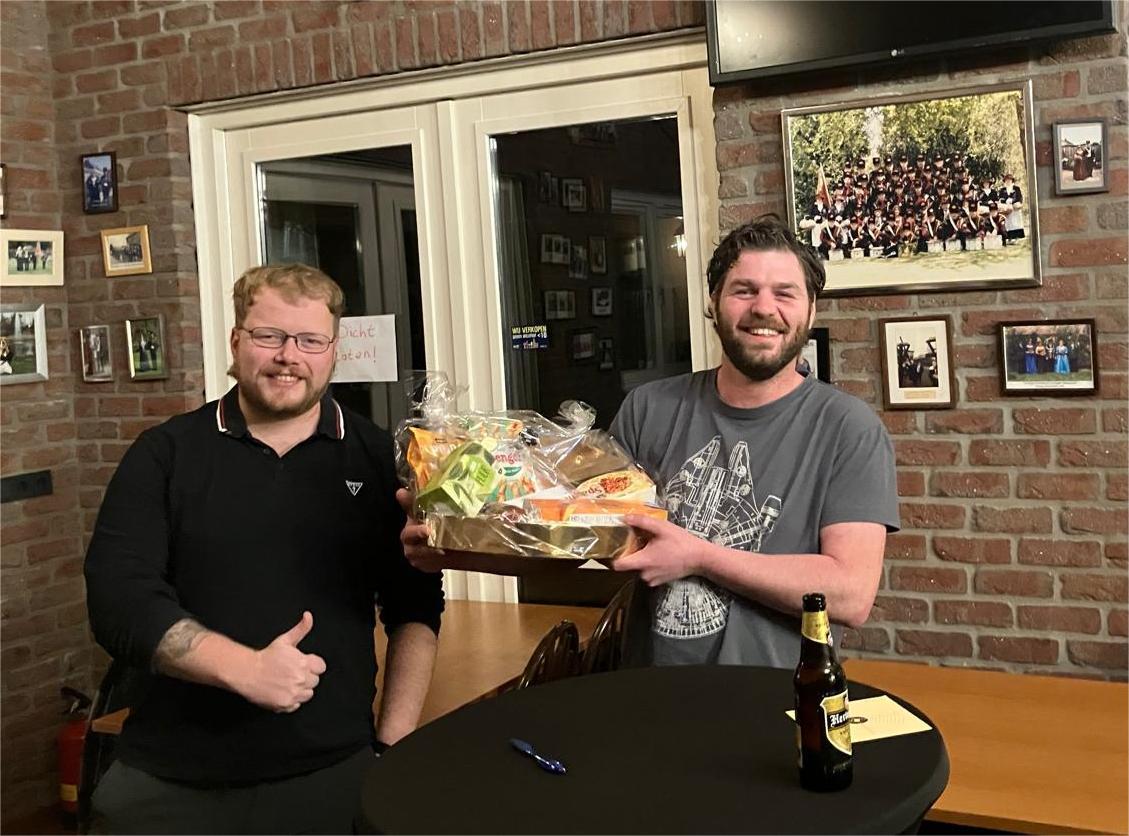 Foto: Stan Remmen(rechts op foto) van schutterij St. Petrus heeft in Siebengewald het bukstoernooi gewonnen.