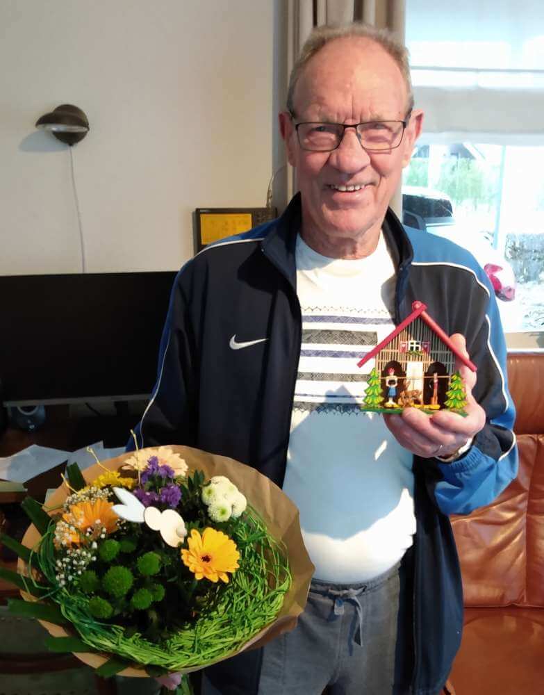 Naast een bos bloemen kreeg Bert een leuk weerhuisje, zodat hij de weersverwachting niet meer zelf