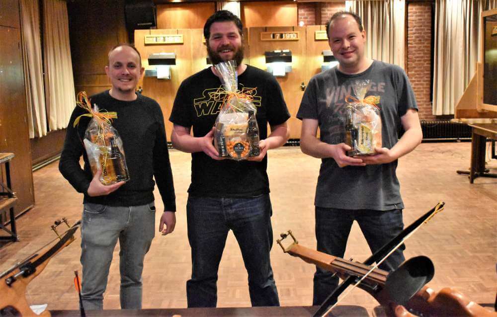 Bij de Pruuver in Afferden vond afgelopen vrijdagavond het laatste wintertreffen van dit seizoen plaats. Alhoewel bij sommige schutters ook enige spanning voelbaar was om met de kruisboog zoveel mogelijk de roos te raken, gingen uiteindelijk de meeste punten en de verrassingspakketjes met versnaperingen naar Stan Remmen(1), Pim Kempel(2) en Daniël Kersten(3).